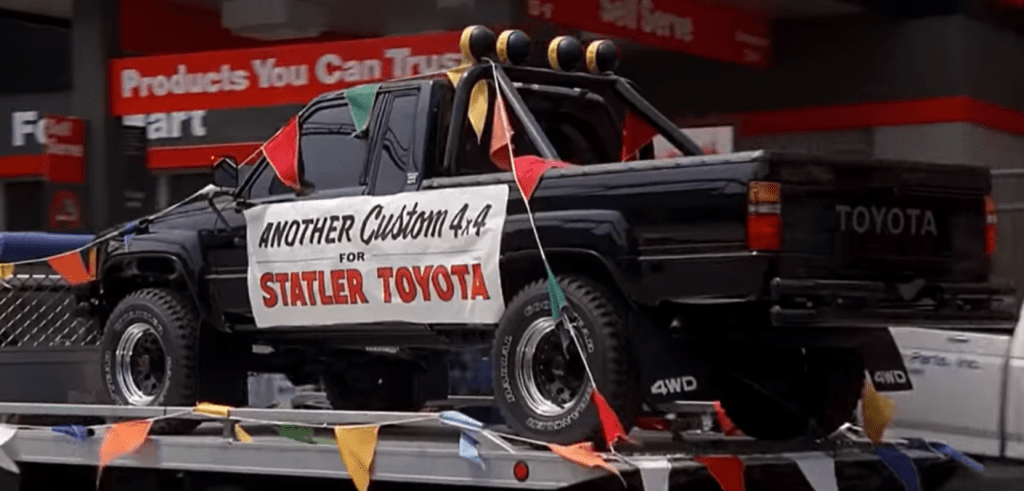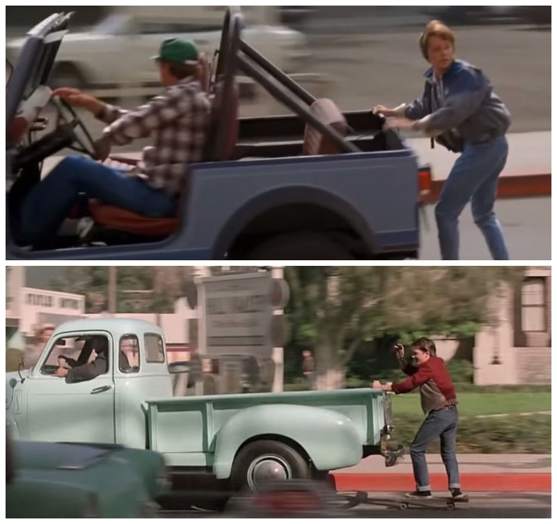 Marty then points to a (what else?) 1985 Toyota (thank god for radio advertising) and starts fantasising about owning it and taking bae camping (awww). See! Already we’re getting some little payoffs! But this is yet more foreshadowing, because at the end of the movie, with the timeline changed Marty ends up with this very same car; symbolising how much better his new family is.