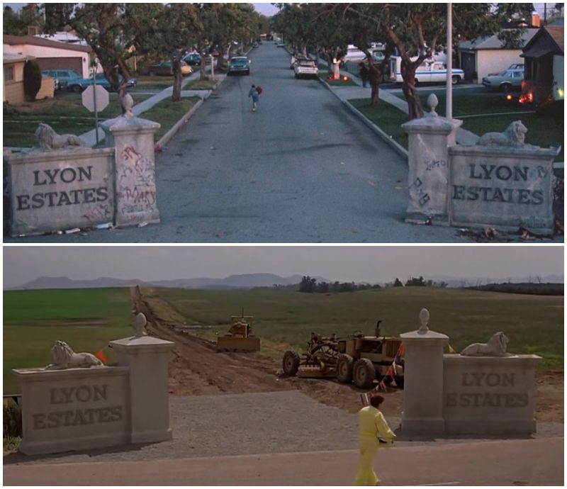 Marty McFly seems like an alright kid thus far, but his home life leaves much to be desired. All four of his family members seem to be stunted and dissatisfied, none of them living up their full potential. The moment Marty comes home he discovers that the car he’d been meaning to take Jennifer out in has been left totalled in the driveway, wrecking the date he’d been planning for weeks. This scene also establishes what Marty’s suburban cul-de-sac looks like, which will be important when he first travels to 1955 and discovers it hasn’t been built yet.