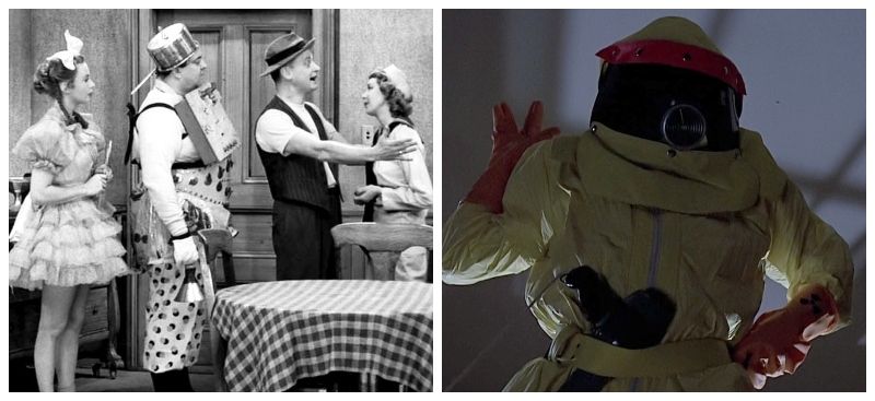 George spends the meal alternating between frantically doing Biff’s reports at the dinner table, and laughing inanely at an old episode of ‘The Honeymooners.’ The inclusion of this reference is an important one that sets up three (count em) plot points. Firstly, it’s the same episode that Lorraine’s family watches over dinner in 1955 (another example of ironic mirroring), it provides an opportunity for Marty to make two anachronistic references (to reruns and having two televisions), and the episode’s premise (someone pretending to a spaceman) gives him the idea to pretend to be ‘Darth Vader from Planet Vulcan’ in a bid to convince George to take Lorraine to the dance later.