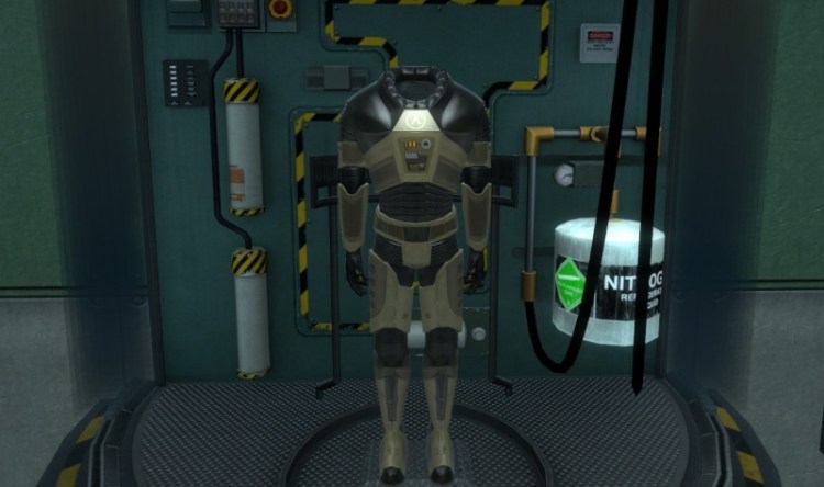 I was chowing on my first donut of the day, my mouth covered in sprinkles and frosting, when that hologram chick showed up in the Hazard Course in the flesh … or rather, in the Hazard Suit.
