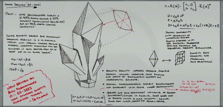 I kept watch over him as he pottered about his lab, flipping switches adjusting dials. He showed me a glowing lump of orange crystal in a glass box, which he was shooting laser beams at from all sides. I watched, amazed, as a prism of light poured out the other end.