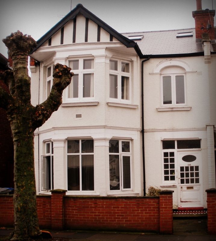 Our new home is much smaller, and there is no garden. It is white and pale blue outside. Other people live in the same building with us, three females and a male. Master and I stay in the top floor, in the attic.